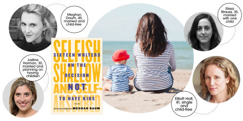 Advertisement - Continue Reading BelowAnd so we brought together four women who occupy different spots on this spectrum to discuss this taboo, and what unraveling it could mean for all of us: Meghan Daum, 45 and married, who has no children and never really wanted them; Elliott Holt, 41 and unmarried, who once wanted children but now is at peace with the fact that she won't have them; ELLE.com features editor Justine Harman, 30 and married, who wants to be a mom, but is also terrified of the prospect; and me, a married woman and mom whose tremendous love for her child has not fully extinguished her ambivalence about the role. Meghan, let's start by hearing why you decided to do this book.